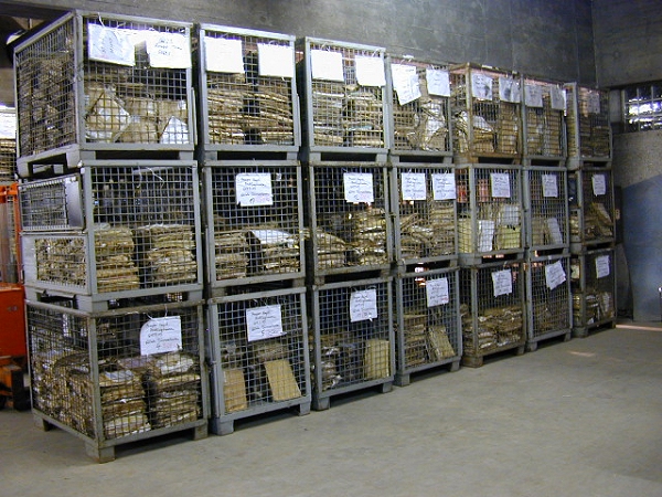 Wegen der besseren Handhabung sollten die Papiere in Kartons gepackt werden. Geeignete Kartons, am besten stabile Bücher- oder Umzugsfaltkartons mit Eingriffslöchern (im Idealformat von 40 × 60 cm Grundfläche und ca. 33 cm Höhe; vier solcher Kartons passen genau auf eine Euro-Palette), bekommt man bei Umzugsunternehmen neuwertig oder gebraucht für 1 bis 3 Euro pro Stück direkt ab Lager.